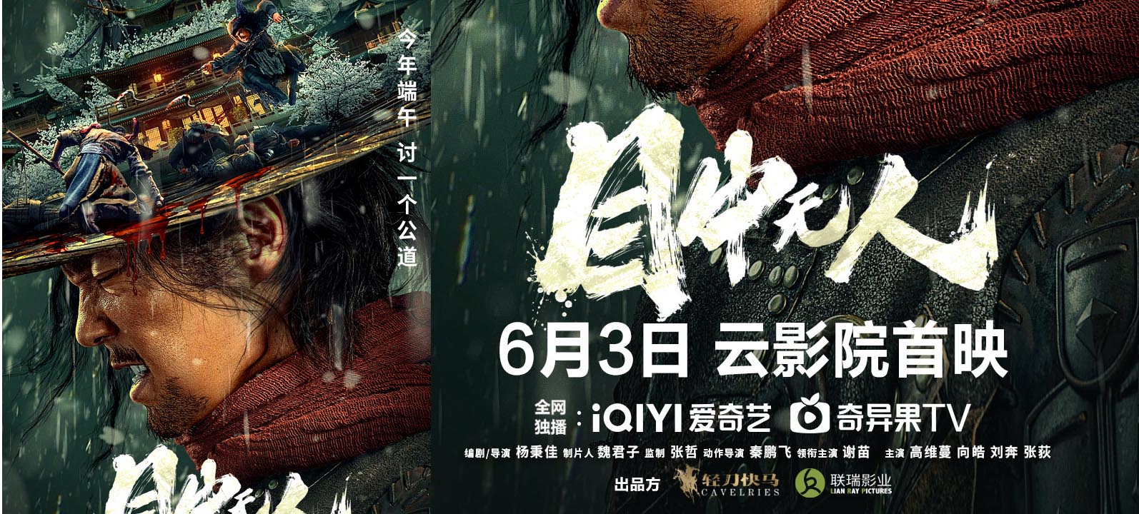 由杨秉佳编剧并执导,魏君子担任制片人,张哲监制,秦鹏飞担任动作导演,谢苗领衔主演,高维蔓、向皓、刘奔、张荻主演的古装犯罪动作爽片《目中无人》今日(5月27日)发布定档预告及海报,将于6月3日端午节正式上线爱奇艺云影院。定档预告展现了盲眼“捉......