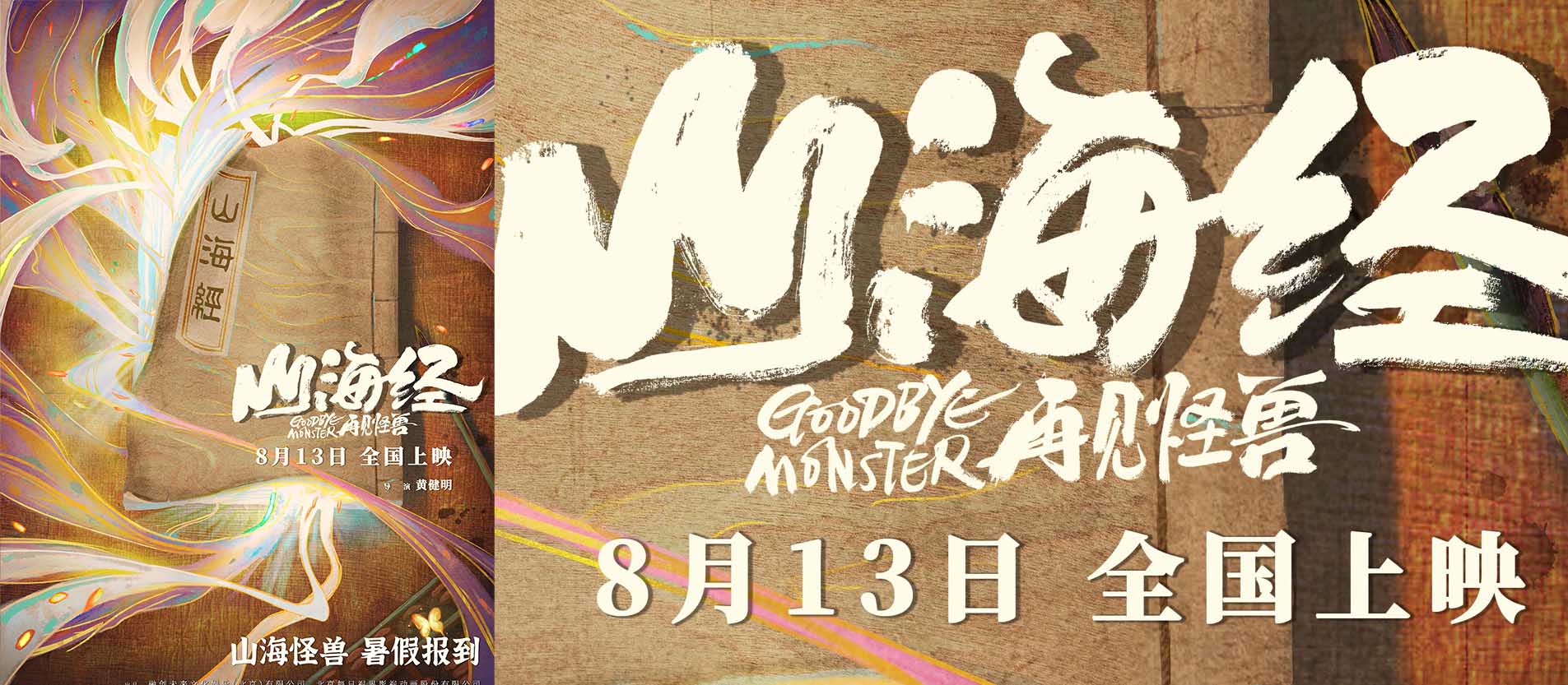 由黄健明执导,吴晓宇担任编剧的国产动画电影《山海经之再见怪兽》今日发布“山海初现”版预告和海报,正式宣布定档8月13日。影片讲述了昆仑神医白泽与麒麟男孩羿,为解开黑灵的秘密,而共同踏上了一场救赎与冒险之旅的故事。 8月13日开启山海经宇宙 ......
