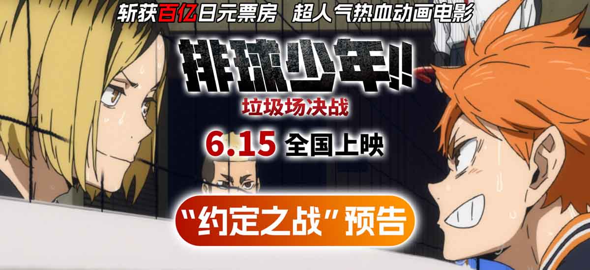 超人气热血动画电影《排球少年!!垃圾场决战》将于6月15日全国上映,官方今日发布“约定之战”预告,与此同时,5月6日也是影片主角日向翔阳与孤爪研磨在原作中进行首次练习赛的纪念日。影片改编自日本漫画家古馆春一所创作王炸级IP《排球少年!!》,......